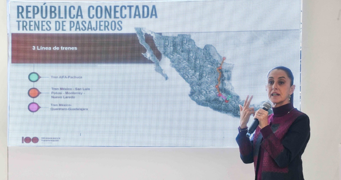La Presidenta electa ha anunciado que durante su administración se construirán tres rutas de trenes de pasajeros: el Tren Pachuca-AIFA, el Tren México-Querétaro-Guadalajara y el Tren San Luis Potosí-Monterrey-Nuevo Laredo.
