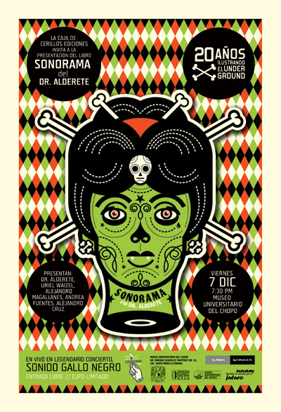 México, 7 Dic. (Notimex).- Un libro que muestra la estrecha relación entre el arte gráfico y la música es "Sonorama", que el ilustrador argentino Jorge Alderete (Dr. Alderete) presentará esta noche en el Museo Universitario del Chopo, volumen que reúne 20 años de su trayectoria artística.