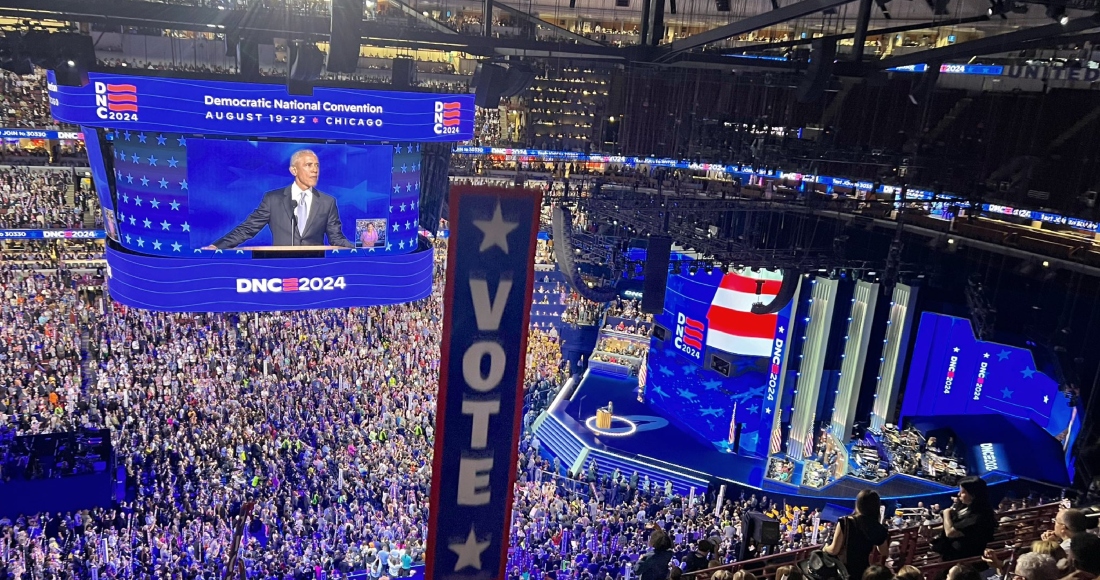 Previo a la Convención Nacional Demócrata, publicó una imagen falsa de alguien que se parece a la Vicepresidenta Kamala Harris dirigiéndose a lo que parece ser un mitin comunista en Chicago con una representación de una pancarta roja y un símbolo comunista. Eso siguió a su republicación de un video falso de sí mismo bailando junto al multimillonario Elon Musk, uno de sus partidarios más vocales.