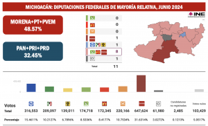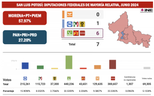 Esta amplia superioridad de triunfos por diputaciones de Mayoría Relativa será la base para que el próximo viernes 23 de agosto del 2024 el Instituto Nacional Electoral le adjudique a Morena y sus aliados los fucieinetes diputados Plurinominales para incluso superar la Mayoría calificada de 334 legisladores, lo que les permitirá aprobar reformas constitucionales y hacer realidad el llamado “Plan C”, por el que tanto abogó el presidente Andrés Manuel López Obrador.