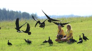Para prepararlos para el viaje, los polluelos son sacados de sus colonias de cría cuando apenas tienen unos días. Se les lleva a una pajarera supervisada por los padres adoptivos con la esperanza de que se produzca una “impronta”, es decir, que las aves establezcan vínculos con esos humanos para acabar confiando en ellos a lo largo de la ruta migratoria.