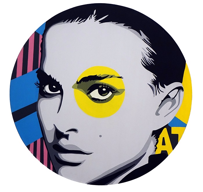 Las obras de Javier Andrés presentan personajes del mundo de los cómics, del cine, el internet y la publicidad con colores brillantes e intensos bajo una estética original y personal.