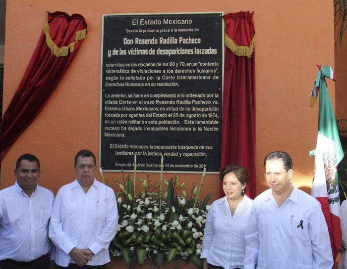 En 2001, la Comisión Interamericana de Derechos Humanos (CIDH) admitió el caso y emitió la Recomendación 26/2001[4], reconociendo la práctica de desaparición forzada como política de Estado, y en 2009 la Corte Interamericana de Derechos Humanos (Corte IDH) emitió una sentencia condenatoria contra el Estado mexicano. La Corte determinó que el Estado había violado los derechos humanos de Rosendo Radilla y ordenó una serie de medidas de reparación, incluida la investigación y sanción de los responsables, la búsqueda efectiva de su paradero, y la implementación de reformas legales para prevenir futuros abusos.