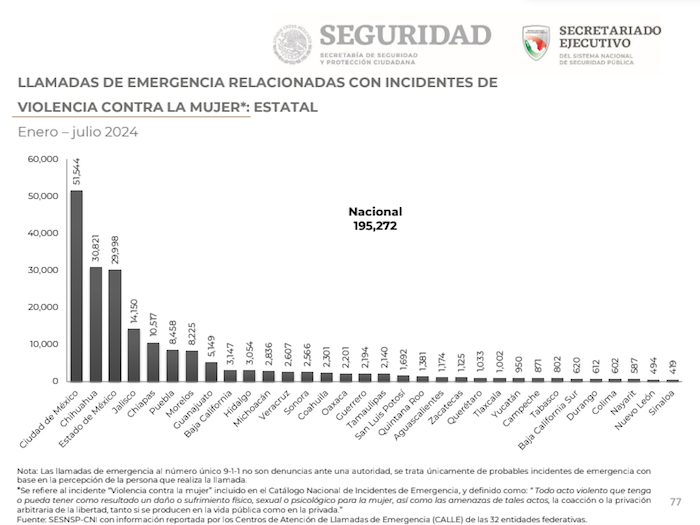 En este sentido, el SESNSP detalla que a nivel estatal, la Ciudad de México encabeza la lista con 51 mil 544 llamadas, seguida de Chihuahua con 30 mil 821 y el Estado de México con 29 mil 998.