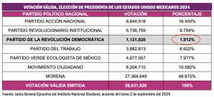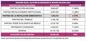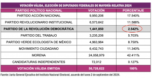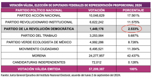 Ciudad de México, 3 de septiembre (SinEmbargo).- La controversia suscitada por la reforma al Poder Judicial de la Federación provocó que este lunes 2 de septiembre del 2024 pasara prácticamente desapercibido el acuerdo que tomó la Junta General Ejecutiva del Instituto Nacional Electoral, por el que se emite la Declaratoria de Pérdida de Registro del Partido de la Revolución Democrática, en virtud de no haber obtenido, por lo menos, el tres por ciento de la Votación Válida emitida en la elección federal ordinaria celebrada el domingo 2 de junio del 2024.