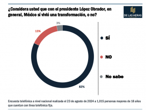 Ciudad de México, 5 de septiembre (SinEmbargo).- Siempre controvertido y navegando en aguas turbulentas, el Presidente Andrés Manuel López Obrador tendrá un afortunado cierre de sexenio, pues el 89 por ciento de los mexicanos considera que durante los seis años de la actual administración México sí vivió una transformación que le cambió el rostro al país y que esa transformación fue para bien.