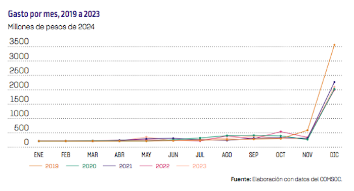 De hecho, Fundar y Artículo 19 indicaron que el gasto de 2023 tuvo un subejercicio de 14.06 por ciento, “es decir, se dejaron de gastar 418 millones de los 2,978 millones que se aprobaron originalmente”, mientras que detectaron que una vez más, una gran parte del gasto se concentró en diciembre, con el 73.85 por ciento del presupuesto ejercido en ese mes. “Este fenómeno, conocido como ‘gasto decembrino’, indica una falta de planificación y ejecución adecuada a lo largo del año”.