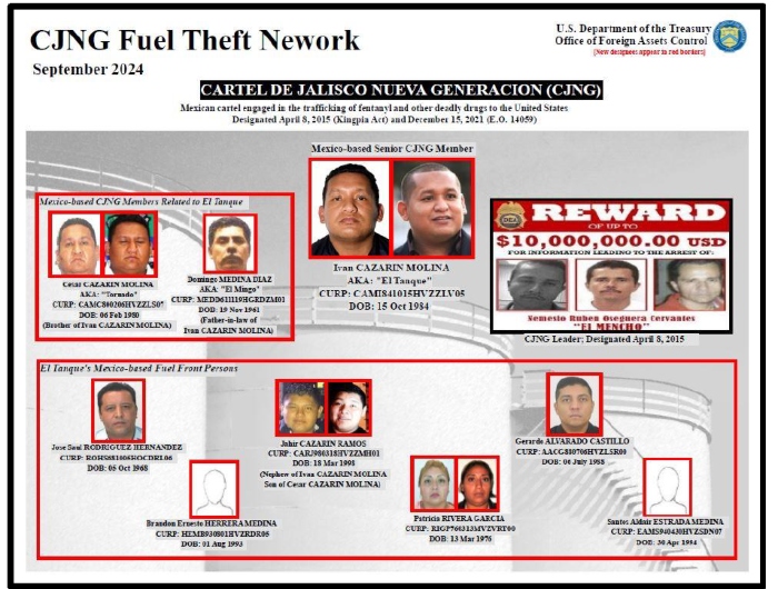 Today, @USTreasury’s Office of Foreign Assets Control sanctioned 9 Mexican nationals and 26 Mexico-based entities linked to a fuel theft network that generates tens of millions of dollars benefiting Cártel de Jalisco Nueva Generación (CJNG). https://t.co/5IjEZPgXzJ