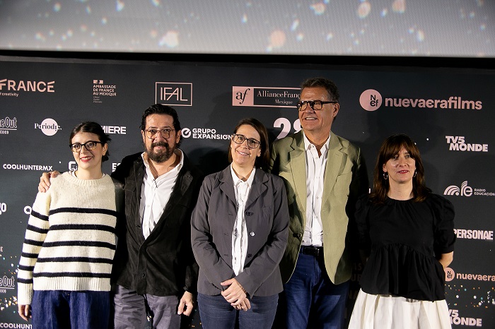 Sofía Llorente, vocera del Tour; Ramón Ramírez, Director de Relaciones Públicas de Cinépolis y de Fundación Cinépolis; ⁠Clémence Mayoral, Coordinadora Nacional de la Red de Alianzas Francesas de México; ⁠Jean-François Guéganno, Consejero de Cooperación y Acción Cultural de la Embajada de Francia en México y ⁠⁠Paula Graf, Coordinadora del Tour de Cine Francés. Foto: Cortesía Tour de Cine Francés