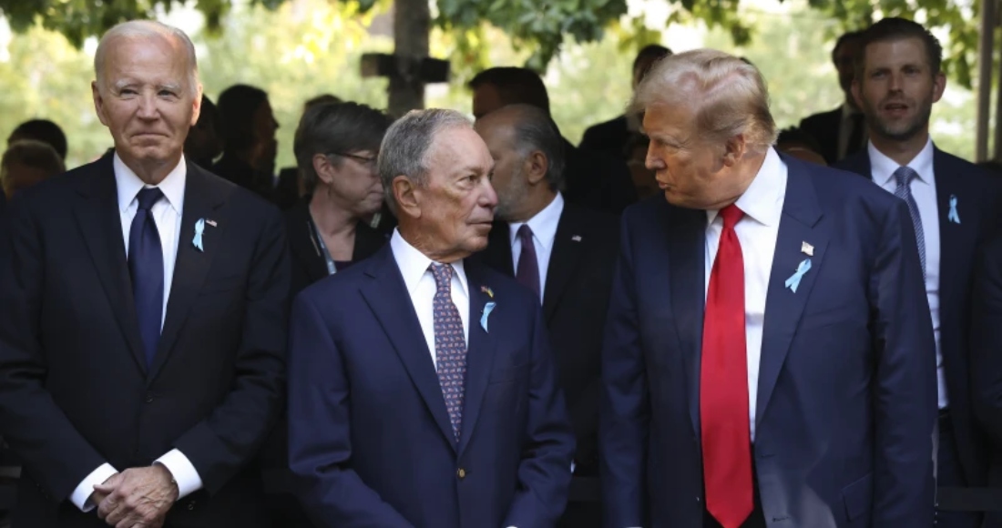 En un notable cuadro, el Presidente Joe Biden, el expresidente Donald Trump y la Vicepresidenta Kamala Harris estuvieron juntos en la zona cero, horas después de que Trump y Harris se enfrentaran en su primer debate. Trump y Biden — el sucesor a cuya toma de posesión Trump no asistió— se dieron un apretón de manos, y el exalcalde de Nueva York, Michael Bloomberg, acudió a facilitar un saludo entre Harris y Trump.