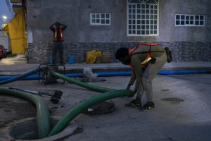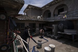 A una cuadra de distancia, Óscar Martínez Hinojosa, de 49 años, ajustaba la manguera de una de sus bombas de achique.