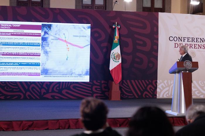 "John" tocó tierra cerca de la localidad de Punta Maldonado el lunes por la noche como un huracán de categoría 3, con vientos máximos sostenidos de 190 kilómetros/hora (120 mph). Perdió fuerza hasta recuperar la categoría de tormenta tropical en la madrugada del martes, con vientos máximos sostenidos de 110 km/h (70 mph) y se espera que se debilite rápidamente.