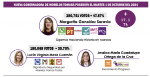Ciudad de México, 27 de septiembre (SinEmbargo).- Los más grandes desafíos que deberá enfrentar la nueva Gobernadora de Morelos, Margarita González Saravia, quien tomará posesión de su cargo el próximo martes primero de octubre del 2024, son la inseguridad pública, la impunidad, la corrupción y el mal desempeño del anterior gobierno que encabezó el también morenista Cuauhtémoc Blanco Bravo.