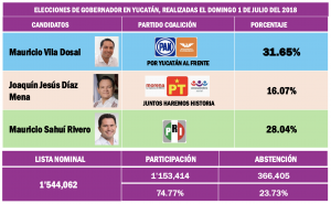El reagrupamiento de priistas en torno a la coalición de Morena y su candidato, incluyendo a quien fuera aspirante del PRI a la gubernatura en 2018, Mauricio Sahuí Rivero, hizo la diferencia en favor de “Huacho” Díaz. En 2018 Díaz Mena fue postulado candidato a la gubernatura por Morena, PT y Encuentro Social. Hace seis años, el PRI obtuvo en la contienda por la gubernatura el 28 por ciento de la votación. Sahuí Rivero y Díaz Mena fueron derrotados por Mauricio Vila Dosal, del PAN.