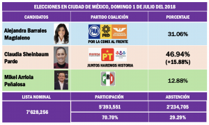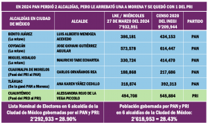En los pasados comicios de junio, Morena y sus aliados del Partido del Trabajo y del Partido Verde Ecologista de México tuvieron una fuerte recuperación, pues retuvieron los gobiernos en seis de siete alcaldías de la ciudad de México; le arrebataron dos demarcaciones al PAN, una al PRI y una más al PRD. El PAN sólo pudo retener tres alcaldías, perdió dos con Morena, partido al que le ganó una demarcación y se quedó con otro gobierno municipal que estaba en poder del PRI. En suma, el PAN tiene la administración de cinco alcaldías. Mientras que el Partido Revolucionario Institucional solo ganó una alcaldía en la capital del país.