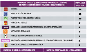 En contraste con la aplastante victoria de Morena, la oposición, principalmente la encabezada por el PAN, con cinco alcaldías, y el PRI, con una demarcación, apenas tendrán influencia administrativa y electoral directa sobre el 28 por ciento de la población en la capital del país. Una calamidad más que tendrá que enfrentar la oposición es que en Congreso de la Ciudad de México, Morena tendrá también la mayoría absoluta.