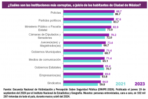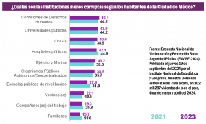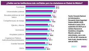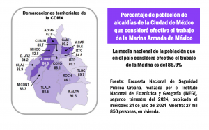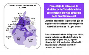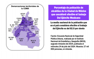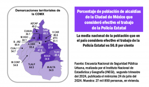 En las alcaldías de la Ciudad de México las fuerzas armadas reciben una muy alta calificación, incluyendo Marina, Ejército, y Guardia Nacional. Pero la calificación para la policía preventiva estatal de la Ciudad de México es relativamente baja.