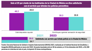 La administración de Clara Brugada tendrá que trabajar muy fuerte para atemperar las malas percepciones que los habitantes de la Ciudad de México tienen con respecto a los policías y los agentes del Ministerios Públicos. Solo el 29 por ciento de los habitantes de la Ciudad de México se dice satisfecho con el servicio que brindan los policías preventivos.