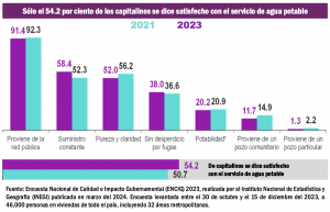 Pero también, con calidad de urgente, el nuevo gobierno morenista de la Ciudad de México deberá encontrar fórmulas eficaces para resolver el problema de la escasez de agua, en un servicio que apenas el 54.2 por ciento de los capitalinos considera satisfactorio. De igual manera, también los servicios de salud requieren atención, pues sólo 58.9 por ciento de la población se asume satisfecho con el servicio de salud estatal o del Instituto de Salud para el Bienestar (INSABI).