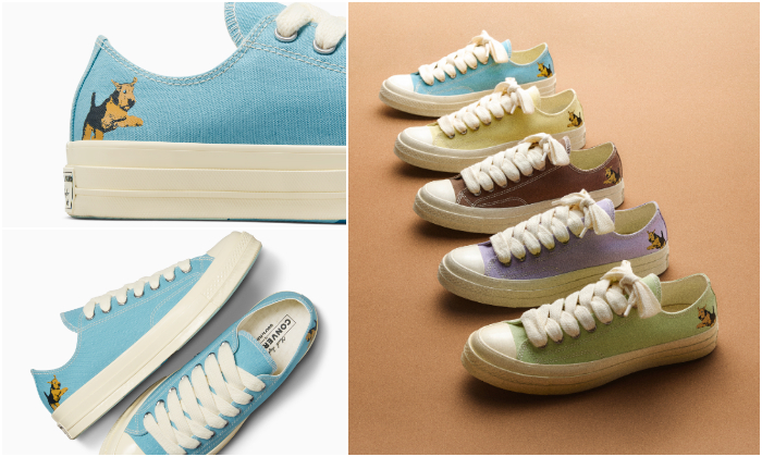 Converse GOLF Le Fleur celebra la visión de Tyler, The Creator de expandir el clásico Chuck 70, inspirado en la paleta de colores de la marca GOLF le FLEUR*. Este tenis cuenta con una suela color off-white, cordones gruesos que complementan siluetas más amplias, y la mascota característica de le FLEUR*, Darryl. El calzado se presenta en cinco combinaciones de colores: Dachshund, Lemon Meringue, Margarita, Milky Blue y Orchid Petal. Cada versión del Chuck de corte bajo presenta un diseño minimalista, un gráfico sutil de Darryl en la parte superior y una suela personalizada con la silueta de un botones, un guiño al icónico atuendo de botones de Tyler.