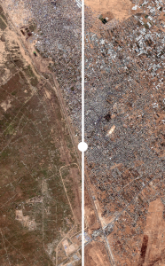 La guerra de Gaza es el más reciente capítulo en un conflicto que ha atravesado múltiples momentos clave y escenarios a lo largo de su evolución. Las imágenes satelitales muestran cómo ciudades como Jan Yunis y Gaza han sufrido importantes pérdidas en sus infraestructuras, incluido el puerto en la ciudad más grande de la Franja, con una gran parte de sus edificios destruidos.