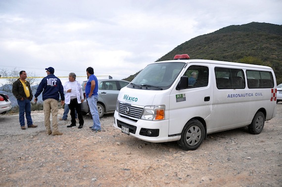 Imágenes desde el rancho “El Tejocote” en el ejido “La Colorada”, en el municipio de Iturbide, Nuevo León. En el lugar se encontraron partes del fuselaje, así como restos humanos de los siete pasajeros. Protección Civil municipal declaró que no hay sobrevivientes.