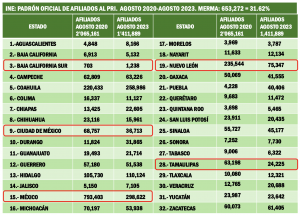 Hay algunos partidos que estarán en riesgo de perder su registro nacional en los comicios del domingo 6 de junio del 2027. Si usted observa con cuidado el padrón de afiliados del Partido Revolucionario Institucional, notará que hubo algunas entidades en las cuales el derrumbe de su membresía fue brutal. Como es el caso del Estado de México, en donde pasó de 793 mil 403 afiliados a 298 mil 622 en unicamente tres años. Pero hay otros partidos, como Movimiento Ciudadano que, en sus principales reductos de Poder, como Jalisco y Nuevo León, no tuvieron mucha suerte en los comicios del 2024.
