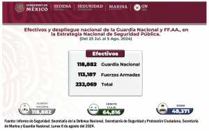 Ciudad de México, 11 de octubre (SinEmbargo).- Luego de cinco años en proceso de formación y consolidación, la Guardia Nacional será el instrumento principal para pacificar el país en el sexenio de la presidenta Claudia Sheinbaum Pardo, con operativos que se articularán con base en un sistema de inteligencia que permitirá ubicar con mayor claridad a los sujetos o grupos generadores de violencia, para someterlos y ponerlos a disposición de la justicia. La Guardia Nacional, que hasta el más reciente reporte contaba con 118 mil elementos operativos, es la mejor herencia del gobierno de Andrés Manuel López Obrador a su sucesora, que funcionará como parte de las fuerzas armadas y coordinada con ellas.