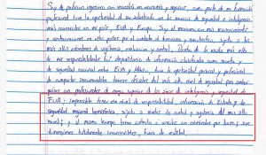 La carta concluye con una súplica al Juez Cogan para que se le permita regresar "lo antes posible" con su familia y que sea posible su reincorporación a la "entrañable sociedad" a la cual expresó su respeto y pertenencia.