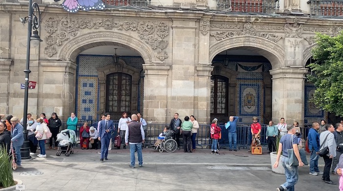 Fila de espera afuera del Palacio de Ayuntamiento. Foto: Dulce Olvera, SinEmbargo.