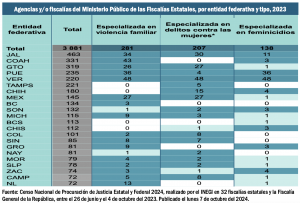 En el compendio de seis apartados diferentes, que miden la eficiencia de las fiscalías estatales en seis campos diferentes, estas tres entidades aparecen en cinco de esos espacios de observación entre las primeras cinco entidades del país más afectadas, y en por lo menos uno de ellos cada una de estas tres entidades aparece en primer lugar.
