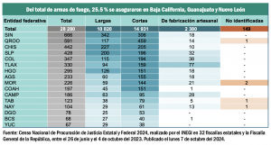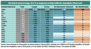 ¿Se ha preguntado usted por dónde pasan las armas que de manera ilegal llegan a México? El Censo de las fiscalías estatales nos informa en cuáles estados hubo mayor aseguramiento de armas durante 2023: Baja California, Guanajuato, Nuevo León, Chihuahua y Michoacán.