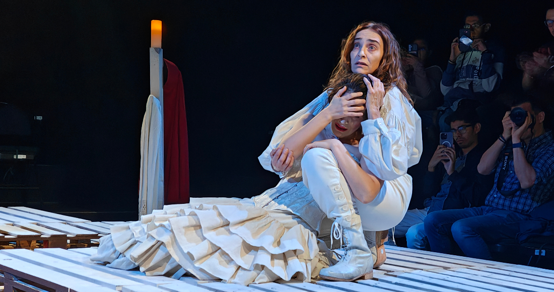El espacio en el que se presenta la obra es muy íntimo y la escenografía, sencilla y con fuerza, ayuda a destacar el trabajo actoral de los protagonistas.