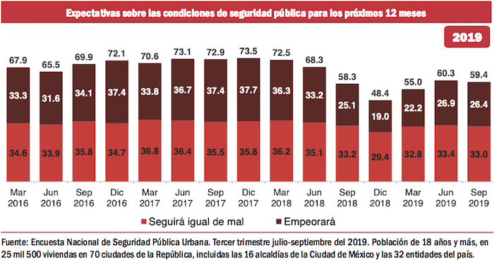 También ha habido un cambio positivo en las expectativas de la gente con respeto a la posibilidad de que pueda haber mejoría en la seguridad pública, o que por lo menos, no empeorará la situación.