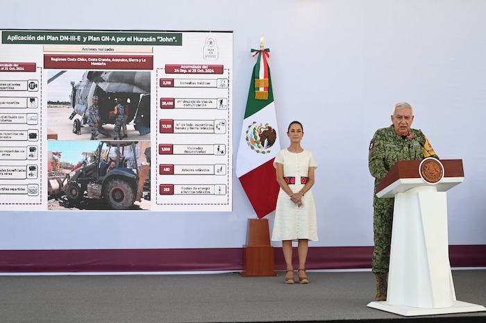 Ciudad de México, 27 de octubre (SinEmbargo).– La Presidenta Claudia Sheinbaum Pardo presentó el informe general de las acciones por el huracán “John” en Guerrero y Oaxaca, estados donde se han invertido más de 7 mil millones de pesos para atender las afectaciones.
