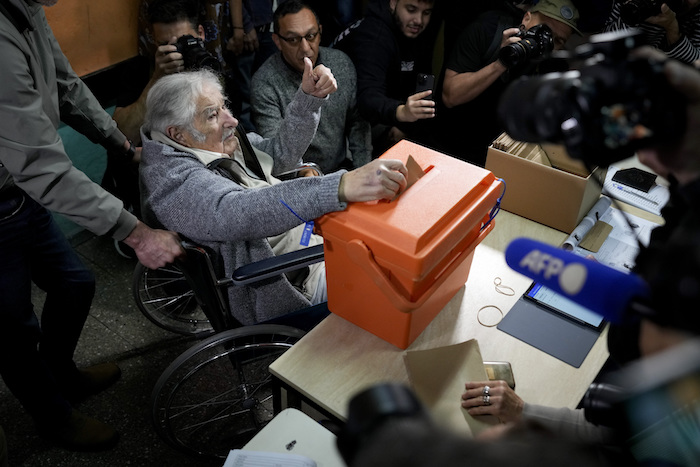 El expresidente José “Pepe” Mujica emite su voto. Foto: Natacha Pisarenko, AP.