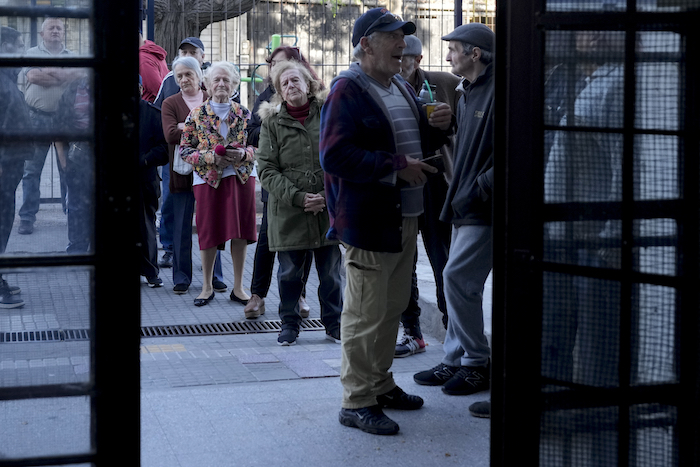 Personas hacen fila afuera de un centro de votación para elegir presidente. Foto: Natacha Pisarenko, AP.