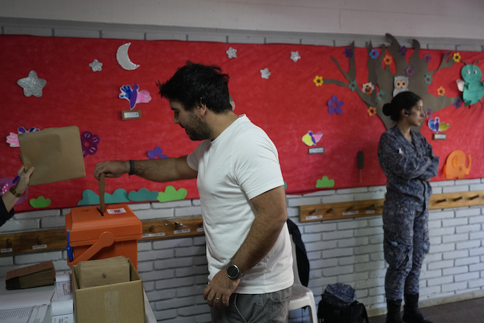 Un hombre vota durante las elecciones generales en Montevideo. Foto: Natacha Pisarenko, AP.
