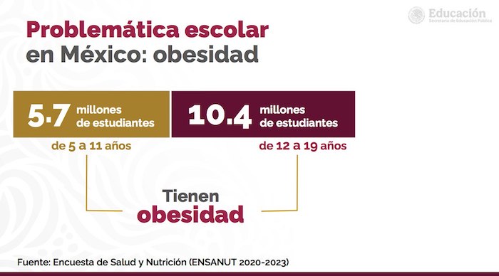 El Gobierno federal detalló que promueve esta estrategia por los niveles de sobrepeso y obesidad de infancias, adolescencias, y por las enfermedades crónicas relacionadas que presentan cuando crecen, como la diabetes e hipertensión. El Secretario Mario Delgado recordó que, de acuerdo con la Encuesta Nacional de Salud y Nutrición, hay 5.7 millones de estudiantes, entre 5 y 11 años, que tienen problemas de obesidad o sobrepeso, así como 10.4 millones de estudiantes de 12 a 19 años, además, relacionó esta obesidad con el alto consumo de azúcares que provienen de ultraprocesados.