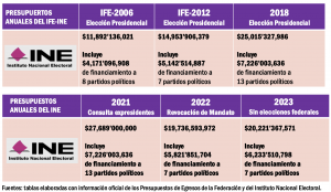 Los presupuestos para el sostenimiento de la estructura electoral del país se han incrementado sensiblemente en las dos últimas décadas. Pues de los 11,892 millones de pesos que costaron las operaciones del entonces Instituto Federal Electoral (IFE) en 2006, a los 40 mil 475 millones de pesos que en 2025 gastará el Instituto Nacional Electoral (INE), habría un aumento del 240 por ciento en los más recientes 19 años. Mientras que el incremento entre en el presupuesto del INE, de los 27 mil 270 millones gastados en el 2024, a la cifra proyectada para 2025, representaría un alza presupuestal del 23.56 por ciento.