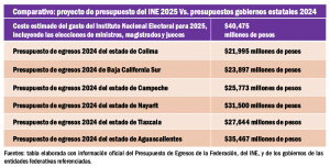 El presupuesto que se destinaría para los comicios que permitirán la renovación del Poder Judicial de la Federación representaría una cantidad muy superior, y en algunos casos, casi el doble, de todo el presupuesto anual que ejercerán este año estados del país como Colima, Baja California Sur, Campeche, Nayarit, Tlaxcala y Aguscalientes.