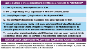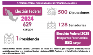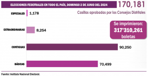 En las elecciones del pasado domingo 2 de junio del 2024 se votó en el ámbito federal por un total de 629 cargos; ahora para la renovación del Poder Judicial, el primero de junio del 2025, los mexicanos iremos a las urnas para elegir Ministros de la Suprema Corte, Magistrados de Circuito y Jueces de Distrito, así como a los integrantes del Tribunal de Disciplina Judicial. En los más recientes comicios se instalaron 170 mil 181 urnas en todo el país y se imprimieron más de 317 millones de boletas, cantidades que serán superadas en los comicios del 2025, aunque todavíoa no hay una estimación precisa al respecto.