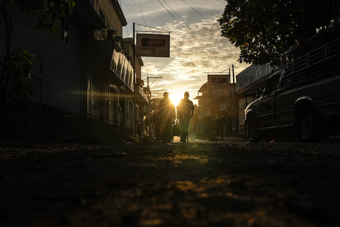 No han avanzado más de 50 metros y tres hombres en moto se acercan a decirles que no pueden seguir caminando. Al ver las cámaras de AP se alejan. Los hondureños se miran con miedo. Al llegar al parque central varias personas les abordan. "¿Ya tienen guía?", les pregunta un hombre. "Chips (telefónicos) activados con saldo", les ofrece otro.