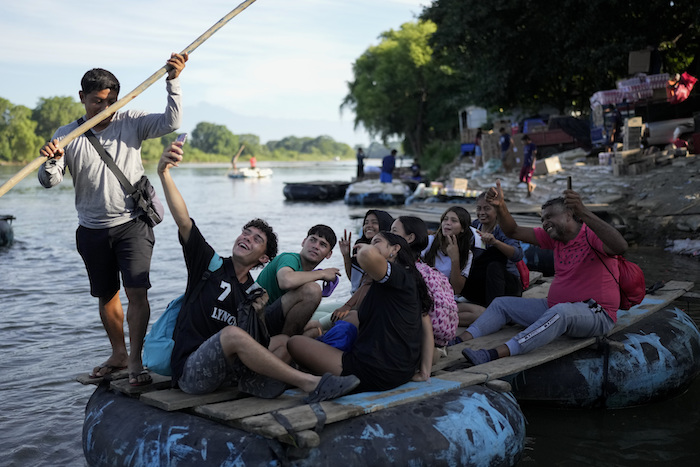 Migrantes venezolanos cruzan el río Suchiate, fronterizo entre Guatemala y México, desde Tecún Umán. Foto: Matías Delacroix, AP.