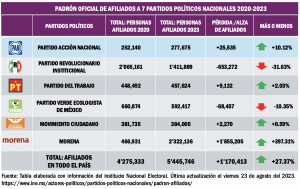 Por lo mismo, uno de los temas que suscita mayor indignación en la opinión pública es la millonaria cantidad de recursos del erario que año con año son entregados a los partidos políticos nacionales para el sostenimiento de sus estructuras y la obtención del voto. Pero además, contrasta con la enorme cantidad de recursos que reciben los partidos políticos con la muy pobre membresía que oficialmente tiene cada uno de ellos.