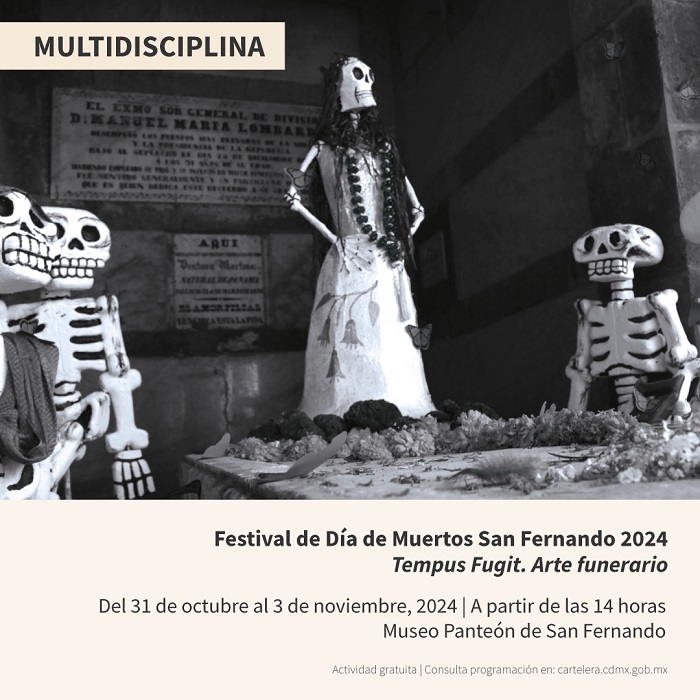A partir de este jueves 31 de octubre, hasta el 3 de noviembre, el Museo Panteón de San Fernando presenta su festival de Día de Muertos en colaboración con recintos y colectivos artísticos como TRILCE, Ópera de Bellas Artes, Centro Cultural El Rule MX,Macabro Film Festival, La Noche Teatro, Fierro Producciones y el Instituto de la Juventud, para resaltar la riqueza de esta tradición mexicana que se hace más especial en un espacio histórico como lo es el Panteón de San Fernando.