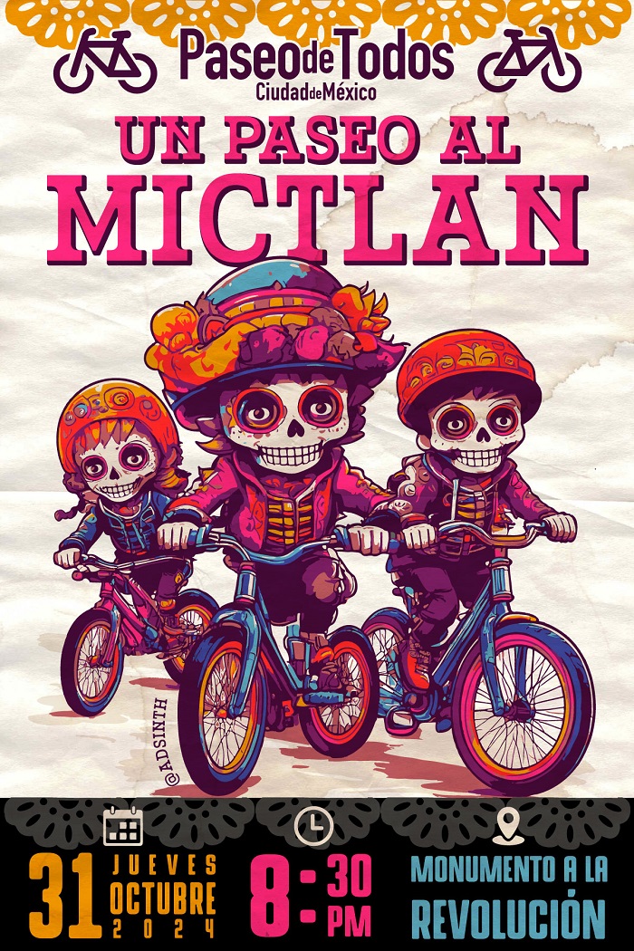 La agrupación ciudadana Paseo de Todos Ciudad de México organiza rodadas los últimos jueves de cada mes, este 31 de octubre tienen un paseo ciclista saldrá a las 20:30 horas del Monumento a la Revolución. La ruta iniciará en el Monumento a la Monumento a la Revolución y avanzará por Reforma hasta Calzada de Guadalupe, dará vuelta en Garrido y regresará por Calzada Misterios hasta Reforma para finalizar donde inició. Si te gusta andar en bicicleta y disfrazarte, esta es una gran opción para disfrutar de las festividades de estos días.