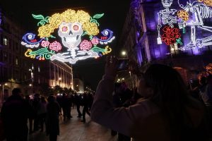 Cientos de niños de diferentes escuelas del municipio de Tlapa de Comonfort, en la región de la Montaña de Guerrero, participaron en una procesión de catrinas y catrines, en conmemoración al Día de Muertos. Foto: Carlos Alberto, Cuartoscuro.Clara Brugada, Jefa de Gobierno, encabezó el encendido de Día de Muertos en el Zócalo capitalino, que lució abarrotado de personas que querían admirar el espectáculo. Foto: Cuartoscuro.