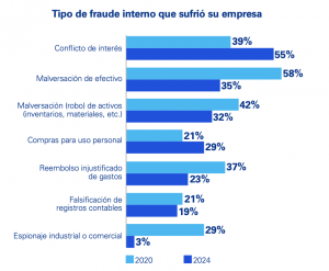 Además, una de cada 5 compañías (es decir, un 20 por ciento de ellas), dicen haber experimentado "el intento o la materialización de algún acto de corrupción", lo que ha ocasionado un impacto financiero superior al millón de pesos en 24 por ciento de los casos.