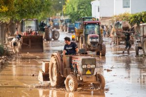 Agricultores en Valencia por si no lo sabían desde el día de después de las lluvias y riadas se encuentran sacando vehículos, escombros, haciendo caminos y limpiando calles y carreteras